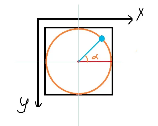 如图,根据初等数学知识不难算出,圆弧上的小圆圆心坐标 x = rect.left + rect.width() / 2f + mMinOvalR * Math.cos(α) y = rect.top + rect.height() / 2f + mMinOvalR * Math.sin(α)