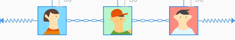 当一行或一列 View 互相约束时会自动形成链,在 IDE 中显示为锁链的线条。给链的第一个 View添加 app:layout_constraintHorizontal_chainStyle 属性(垂直链为 app: layout_constraintVertical_chainStyle)可以改变链的对齐方式,可选值有: