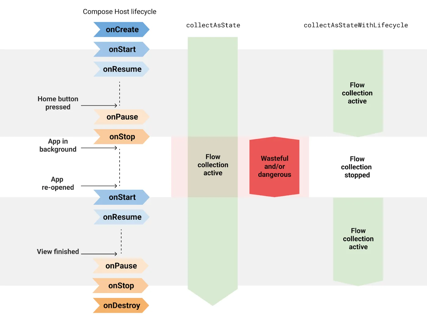 }处理 Activity Stop 时,带有生命周期感知的 collectAsState 与普通版本的区别如图: