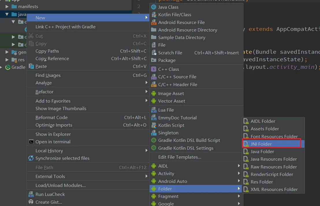 创建 JNI 文件夹