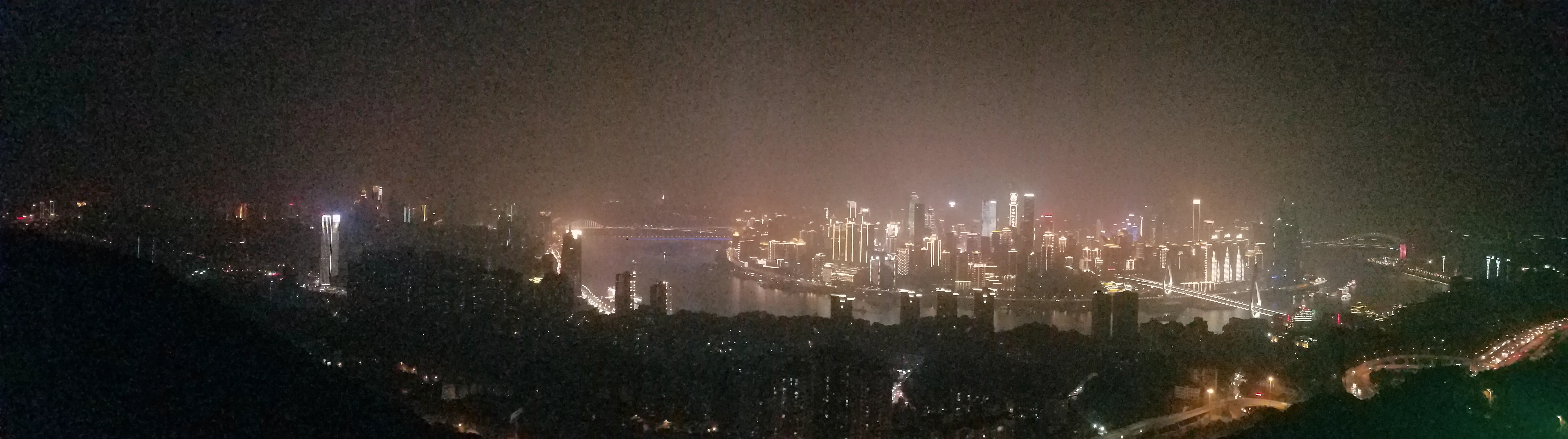 到达市中心已是晚上七点多,下车后步行前往洪崖洞。洪崖洞是一个民俗区域,共11层。从市中心前往的话直接到达的是11层,先不着急下去,走上旁边的过江大桥,远距离观望下洪崖洞,真是璀璨。