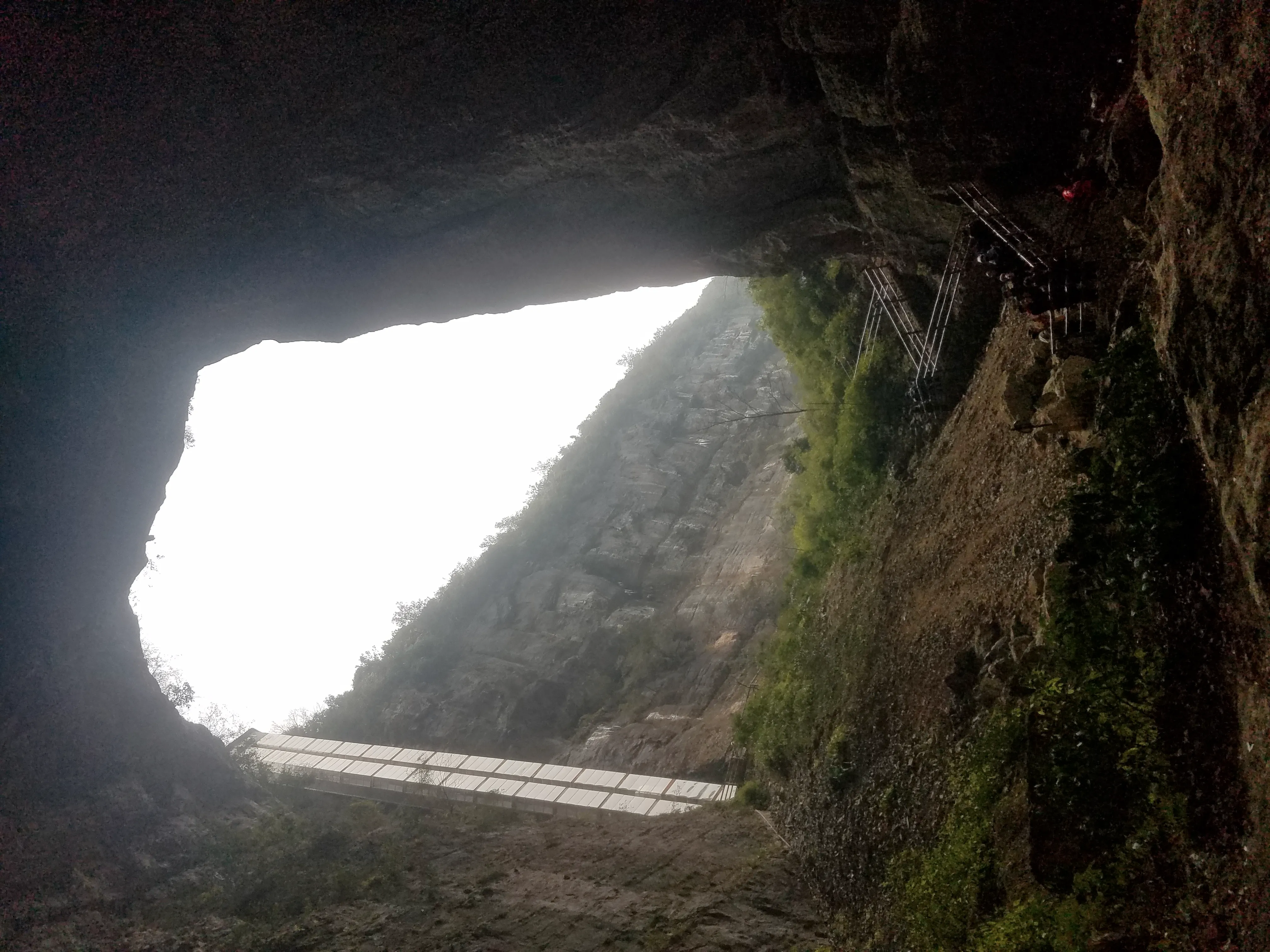 天坑出口的地方需要爬一段坡,有牌子告诉你步行大约多长时间。路不算长,主要就是爬坡。行动不便的可以另外购买车票,但个人觉得没有必要。 到达出口再次乘坐免费班车前往地缝(也可以返回游客中心)。