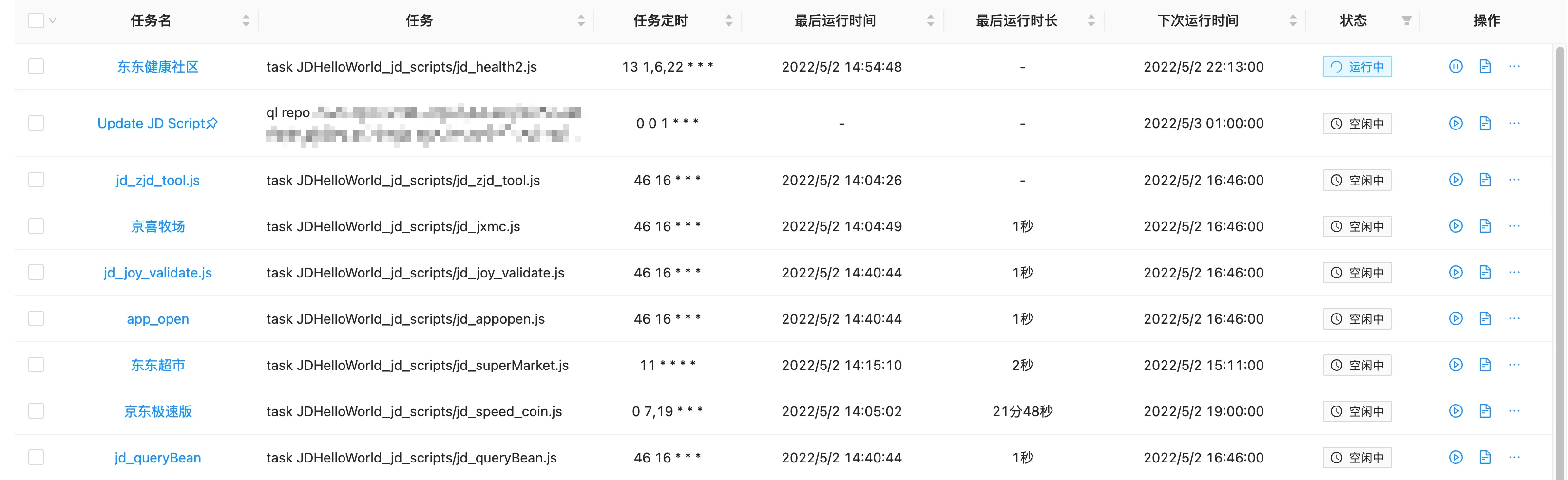 ql repo https://github.com/JDHelloWorld/jd_scripts.git "jd_|jx_|getJDCookie" "activity|backUp|Coupon|enen|update|test" "^jd[^_]|USER|^TS|utils|notify|env|package|ken.js"注意,此命令与所选用的脚本仓库有关 - 定时规则: