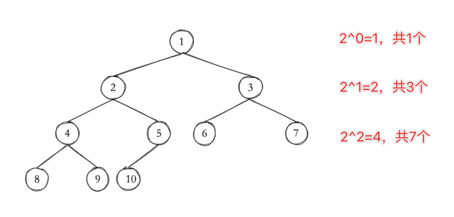 - 从根节点到第 h 层总节点数为 (h 从 1 开始)