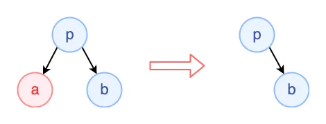 这种情况也不难,直接把那唯一的孩子(子树)接上去就行了。不管是左孩子还是右孩子,根据 BST 的性质,都是小于 p 的,因此接上去后依然是 BST。