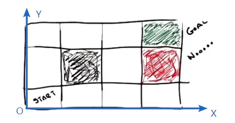 - **STATES(状态):**顾名思义,就是智能体当前的状态。在这个世界中,表现为「坐标」。则开始状态就是(1,1),目标状态是(4,3).
